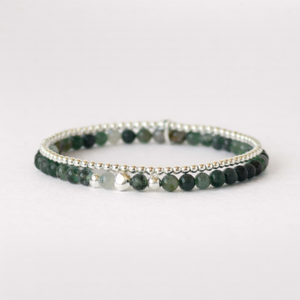 Dieses elegante Armband besteht aus hochwertigem 925er Sterlingsilber und sorgfältig ausgewählten Naturstein-Kugeln. In der Mitte setzt ein zartes Herz, eingerahmt von zwei Silberkugeln, einen liebevollen Akzent. Die dezente Farbgebung der Edelsteine macht das Armband zu einem vielseitigen Begleiter, der sich mühelos mit verschiedenen Outfits und Schmuckstücken kombinieren lässt.
