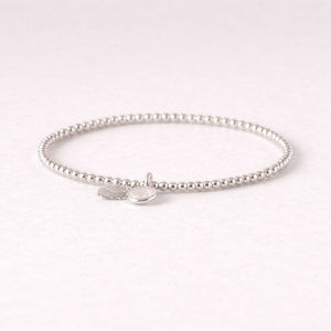 Ein wunderhübsches Armband mit filigranem Feder- und Mondstein-Anhänger. Die feinen Kugeln merkt man beim Tragen kaum.