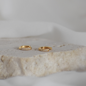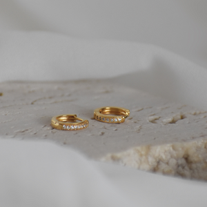 Kleine Creolen besetzt mit filigranen Zirkonia-Steinchen. Ein Paar, das in deiner Schmucksammlung nicht fehlen sollte.