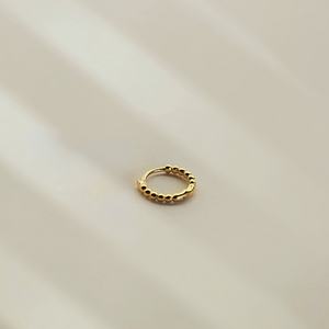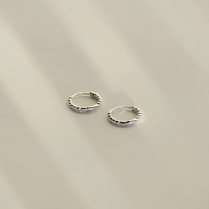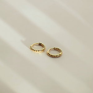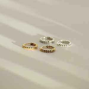 Diese dezenten Mini Creolen mit hübscher gepunkteter Struktur sind wunderbare Alltagsbegleiter. Du kannst sie als Paar tragen oder ergänzend zu deinem Ohrschmuck im 2. oder 3. Ohrloch.