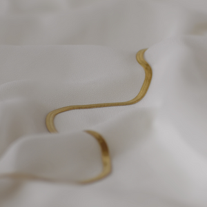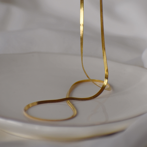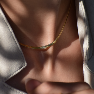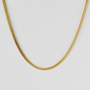 Die Halskette "Enya" mit flachen Kettengliedern schmiegt sich optimal an den Hals und verleiht einen eleganten Touch. Sie eignet sich besonders gut für die Kombination mit anderen, etwas längeren Ketten.