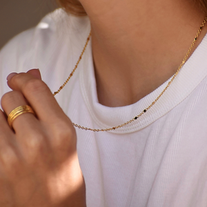 Diese zarte und zeitlose Halskette ist in den Längen 40-45cm und 50-55cm und in zwei Farben erhältlich. Du entscheidest, welche am besten zu dir passt!