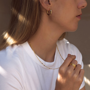 Für ein schönes Layering eignet sich «Eve» übrigens perfekt. Ergänze sie mit weiteren Ketten in verschiedenen Längen und Strukturen und verleihe deinem Outfit so den letzten Schliff.