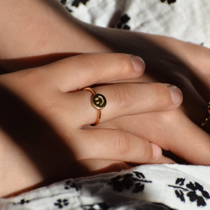Ein hübscher Fingerring für ein kleines Gute-Laune-Mädchen ;) Der Ring "Happy" ist in der Grösse verstellbar und kann so an jeden Finger angepasst werden.