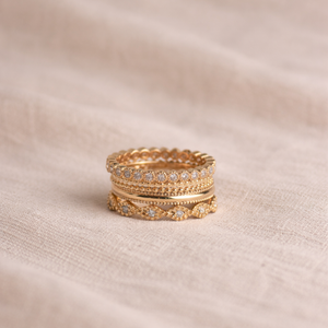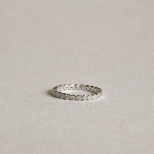 Fein, elegant und zeitlos – dieser zarte Ring verleiht jedem Look einen Hauch von Glamour. Rundum mit funkelnden Steinen besetzt, reflektiert er das Licht aus jedem Winkel und sorgt für ein dezentes, aber wunderschönes Strahlen.