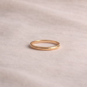 Dieser filigrane Ring überzeugt durch seine zeitlose Eleganz und die feine, doppelte Perlenstruktur am Rand. Ein Schmuckstück zwischen minimalistischem Design und liebevollen Details.
