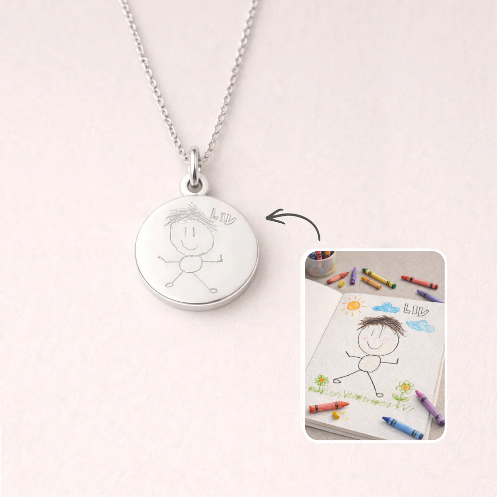Ein gutes Foto der Handschrift bzw. der Zeichnung ist ausreichend. Optimalerweise auf neutralem (weissem) Hintergrund. Da der Anhänger nicht allzu gross ist, können wir allenfalls nur einen Teil der Zeichnung/Handschrift umsetzen. In diesem Fall nehmen wir direkt mit dir Kontakt auf, um die Details zu besprechen.