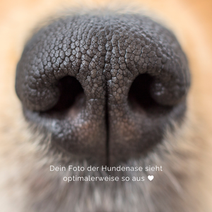 Wir benötigen für die Umsetzung eine Nahaufnahme der Hundenase (möglichst frontal, damit ein grosser Teil der Struktur erkennbar ist). Für ein scharfes und kontrastreiches Foto braucht es Geduld. Jedoch ist eine Gravur nur mit einem entsprechenden Bild möglich. Verschwommene, unklare Strukturen können nicht digitalisiert werden.